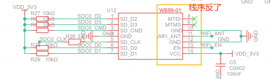 - 原理图符号画错,导致PCB板与模组的连接出现问题,模组没有上电。